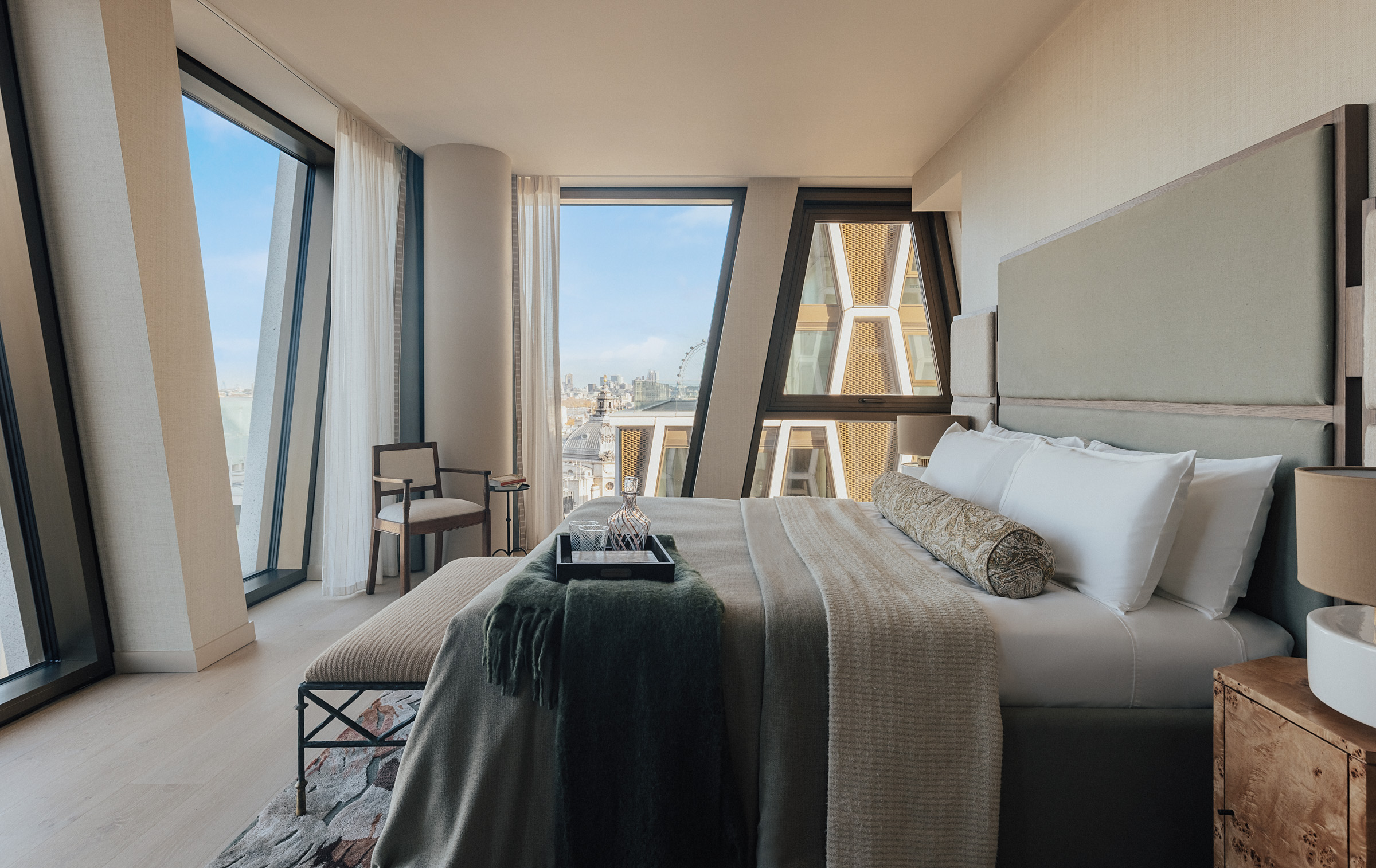 This generous three-bedroom apartment on the 6th floor of Sancy West offers 151.4 sq m (1,630 sq ft) of refined, well-planned living space, featuring a large separate kitchen and an impressive living/dining room framed by full-height windows with views towards the Houses of Parliament and the London Eye.
